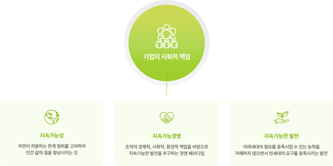 우리에게 지속 가능한 개발은 회사와 고객의 요구 사항을 충족하는 전략과 조치를 채택하는 동시에 미래의 가치와 품질 측면에서 인적, 자연적 자원을 보호, 지지, 개선하는 것을 의미합니다.